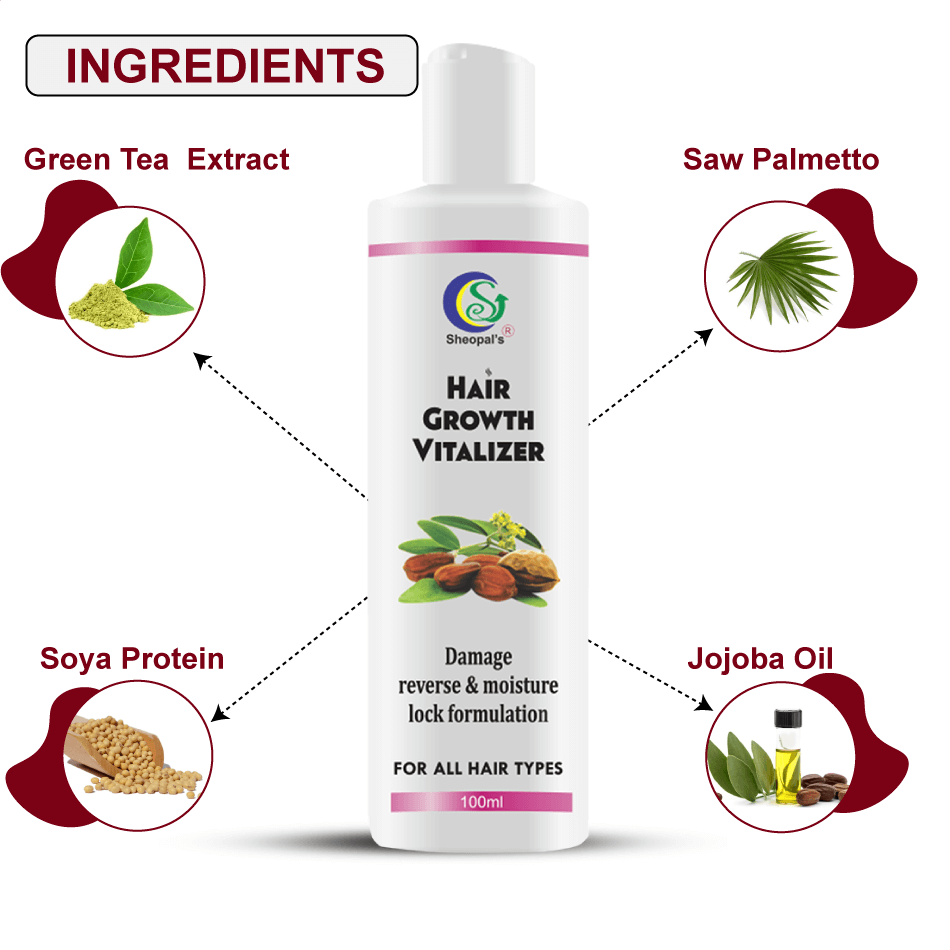 इसका रहस्य है नेचुरल तालमेल। भारतीय आयुर्वेदिक जड़ी बूटियों के साथ साथ Hair Growth Vitalizer में कुछ ऐसे बेहतरीन तत्व डाले गए हैं जो साइंटिफिकली डिजाइन्ड हैं और बाल झड़ने को जड़ से खत्म कर देते हैं। नेचुरल तरीके से मिलने वाले सबसे असरदार मिश्रण और दुनिया का सबसे बेस्ट साइंटिफिकली मेथड लगाकर Hair Growth Vitalizer इस तरह से बनाया गया है कि ये बाल झड़ने के मुख्य कारण, यानि डीएचटी और कोलेजन के ज्यादा बनने की प्रोसेस को कम करता है। यही नहीं Hair Growth Vitalizer में कई विटामिन भी डाले गए हैं जो कि बालों की ग्रोथ और उनको मजबूती देने के लिये प्रोवेन हैं। ये एक सच है : Hair Growth Vitalizer एक बेहतरीन तरीके से साइंटिफिकली डिजाइन्ड है जो कि महिला और पुरुषों के बाल झड़ने और पतले होने कि हर स्टेज पर काम करता है।